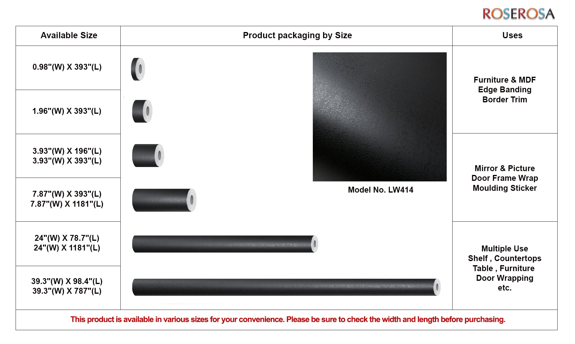ROSEROSA Peel and Stick Faux Leather Architectural Film Self-adhesive Vinyl Film Wallpaper Door Wrap Counter Top Border Mirror Molding Trim LW414