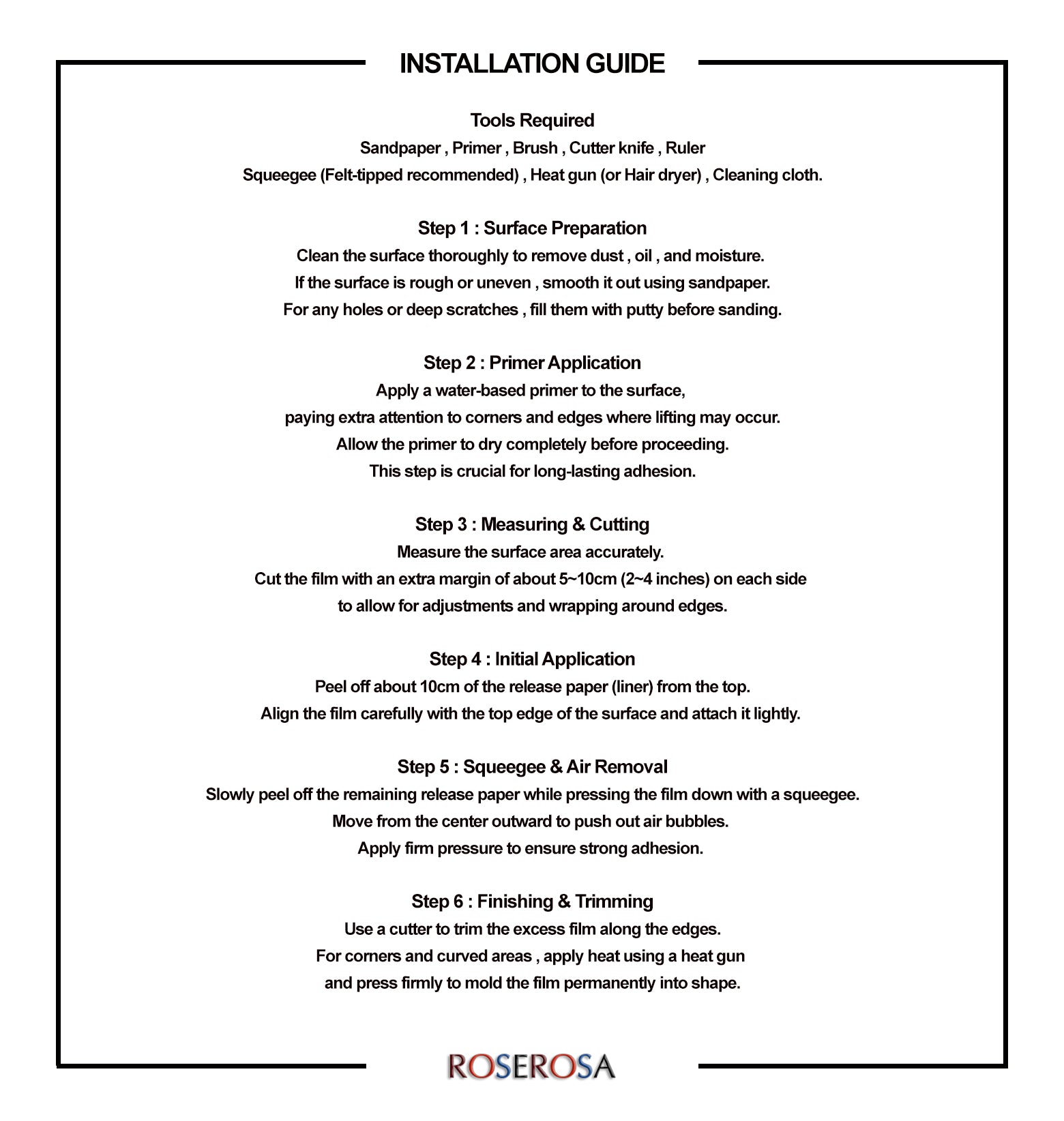 The following steps provide the general method for applying ROSEROSA film to a substrate.