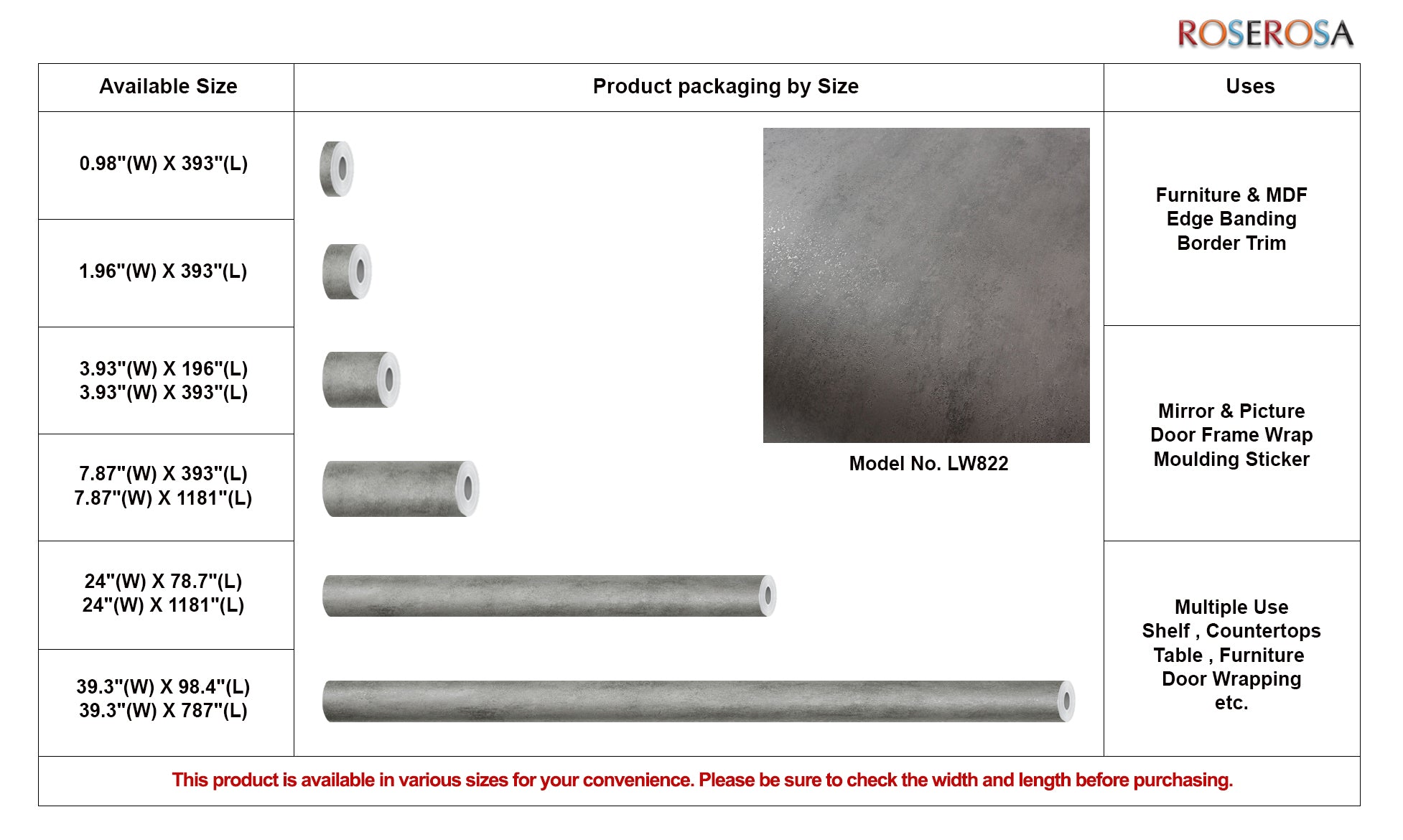 ROSEROSA Peel and Stick Faux Concrete Architectural Film Self-adhesive Vinyl Film Wallpaper Door Wrap Counter Top Border Mirror Molding Trim LW822