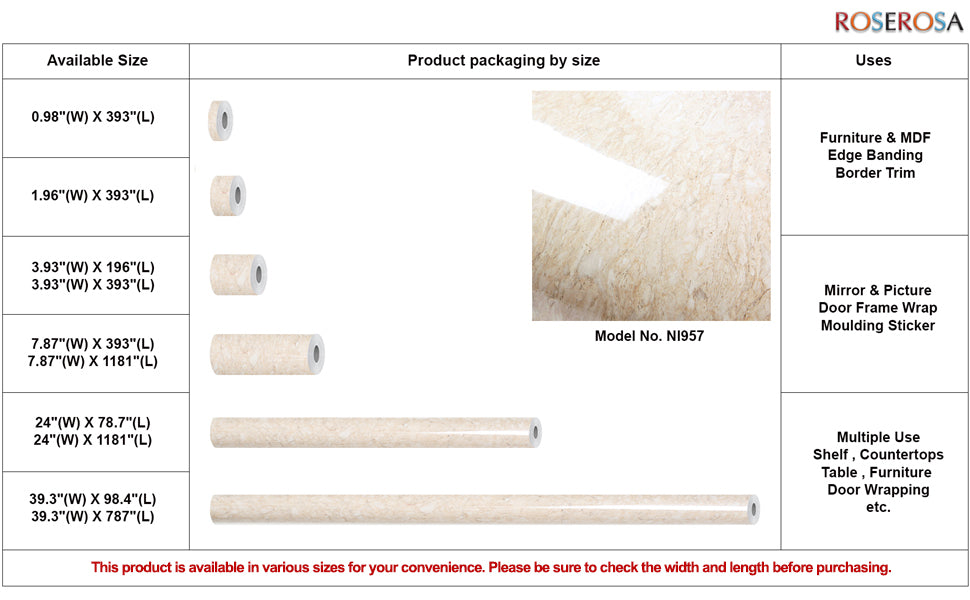 • Excellent Adhesion - ROSEROSA contact paper with excellent adhesion is suitable for refinishing steel, glass, marble shelf items and furniture and covering table tops. Excellent adhesion allow for long-term use after application.