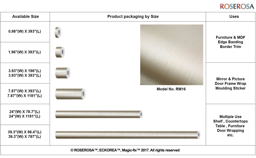 ROSEROSA Peel and Stick Brushed Faux Metal Contact Paper Self-Adhesive Wallpaper Door Wrap Countertop Moulding Trim RM16