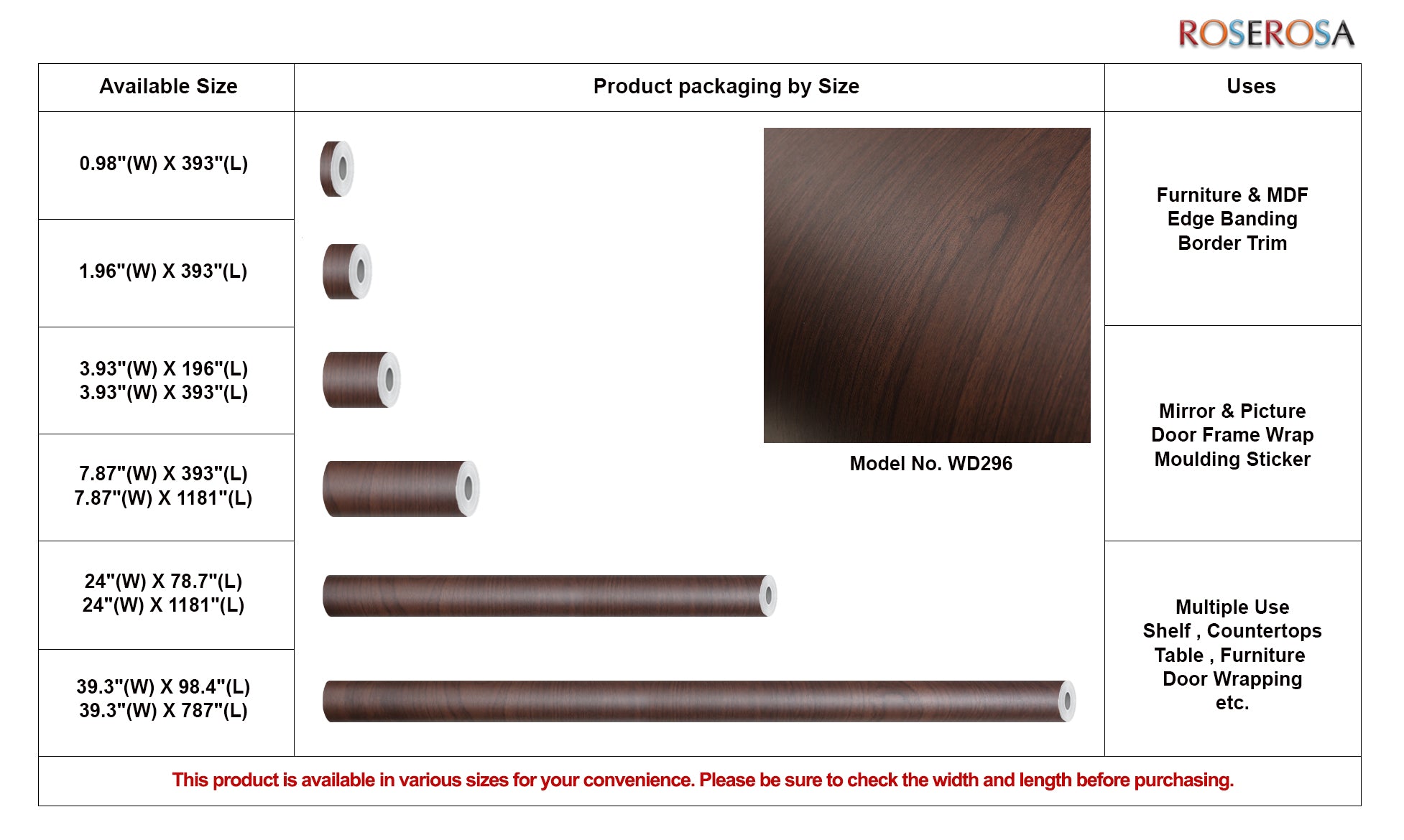 This product is available in various sizes for your convenience. Please be sure to check the width and length before purchasing.