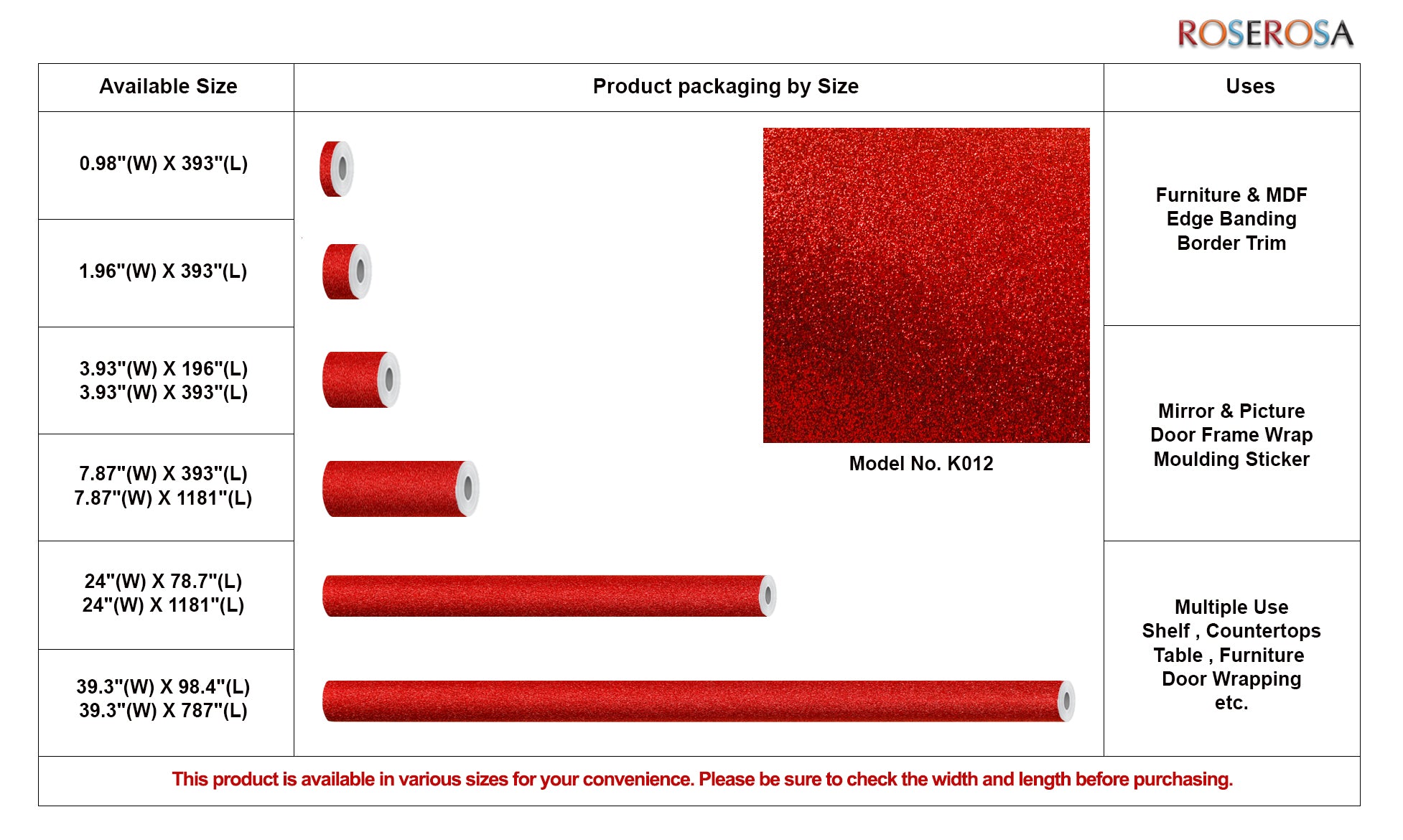 This product is available in various sizes for your convenience. Please be sure to check the width and length before purchasing.