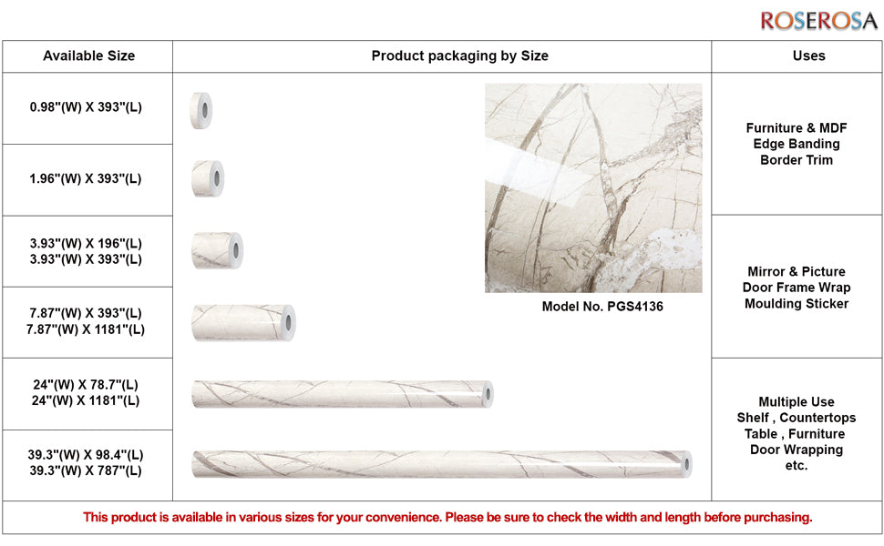 - Excellent Adhesion - ROSEROSA contact paper with excellent adhesion is suitable for refinishing steel, glass, marble shelf items and furniture and covering table tops. Excellent adhesion allow for long-term use after application.