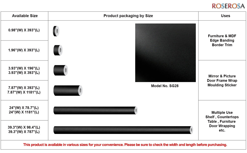 ROSEROSA Peel and Stick Matt Solid Self-Adhesive Wallpaper Door Wrap Counter Top Border Mirror Molding Trim SG28