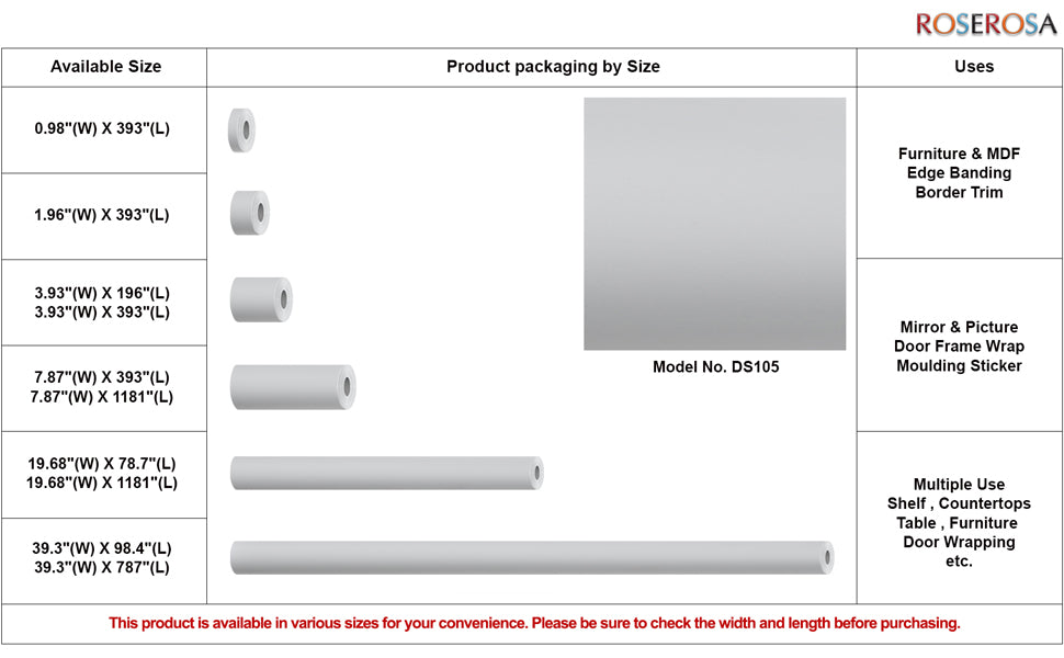ROSEROSA Peel and Stick Matt Solid Self-Adhesive Wallpaper Door Wrap Counter Top Border Mirror Molding Trim DS105