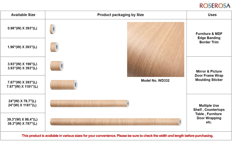 ROSEROSA Peel and Stick Natural Faux Wood Architectural Film Self-adhesive Wallpaper Door Wrap Counter Top Border Mirror Molding Trim WD332
