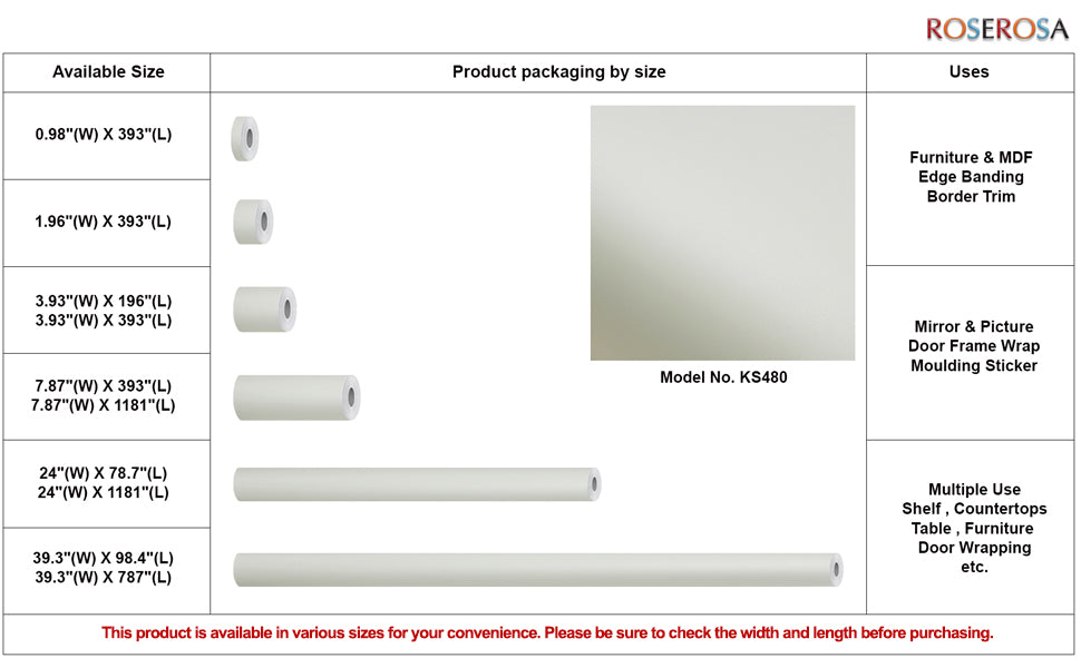 ROSEROSA Peel and Stick Solid Matt Architectural Film Self-adhesive Wallpaper Door Wrap Counter Top Border Mirror Molding Trim KS480