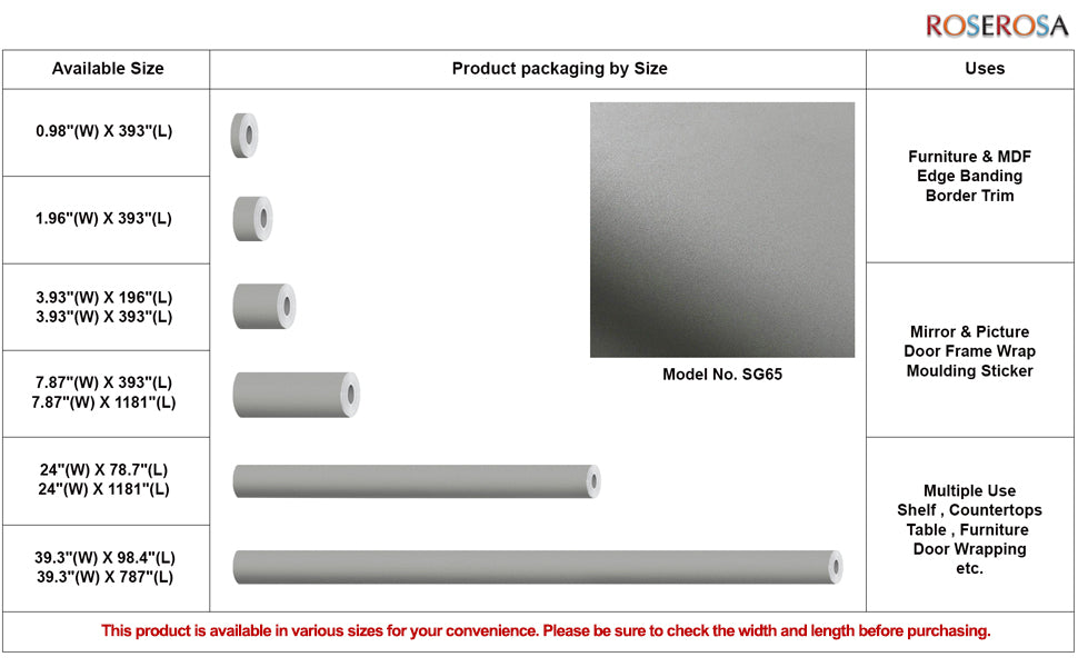 ROSEROSA Peel and Stick Solid Matt Architectural Film Self-adhesive Wallpaper Door Wrap Counter Top Border Mirror Molding Trim SG65