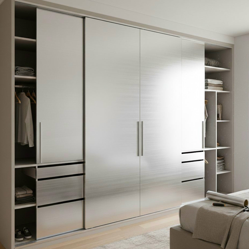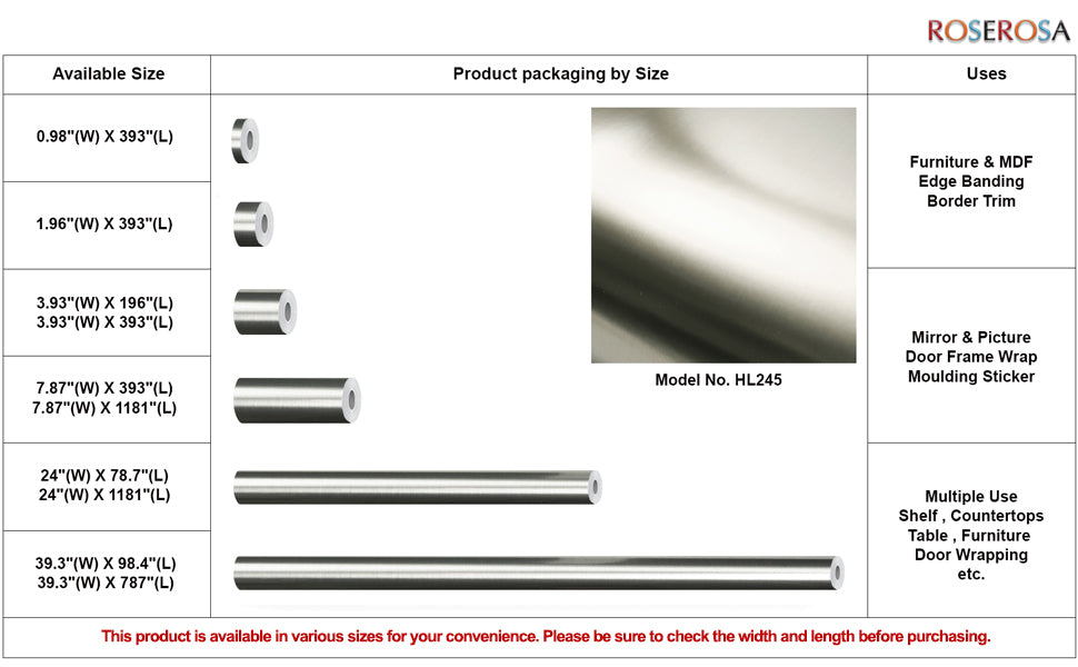 ROSEROSA Peel and Stick Faux Stainless Steel Contact Paper Self-Adhesive Wallpaper Door Wrap Counter Top Border Mirror Molding Trim HL245