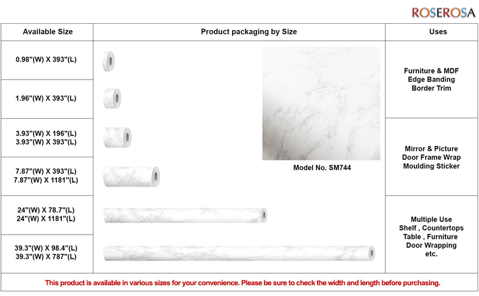 - Excellent Adhesion - ROSEROSA contact paper with excellent adhesion is suitable for refinishing steel, glass, marble shelf items and furniture and covering table tops. Excellent adhesion allow for long-term use after application.